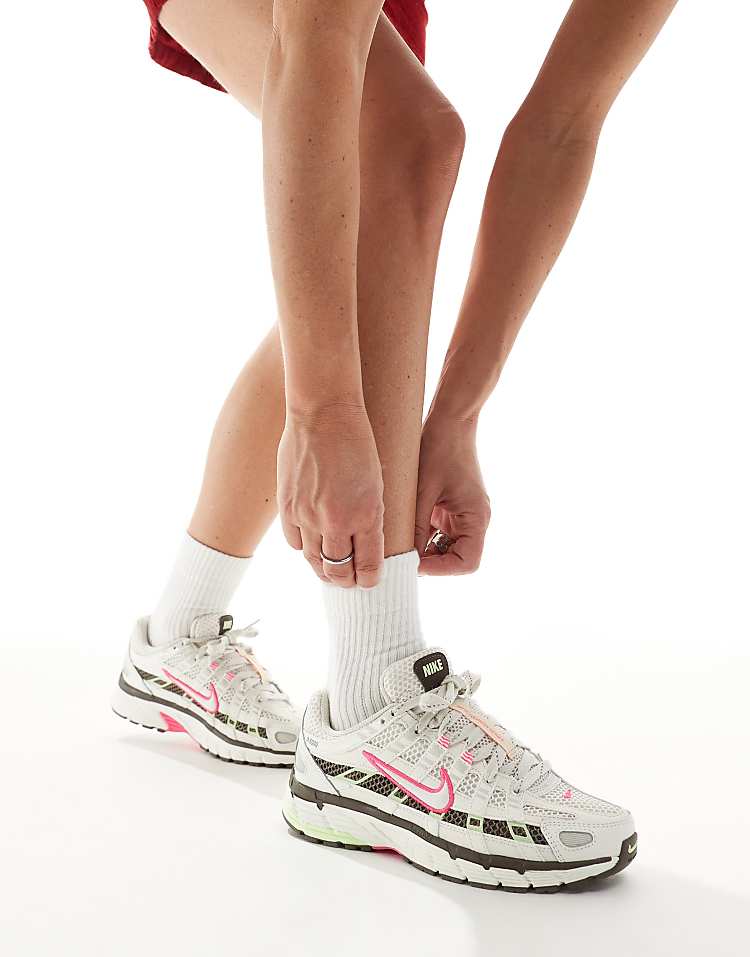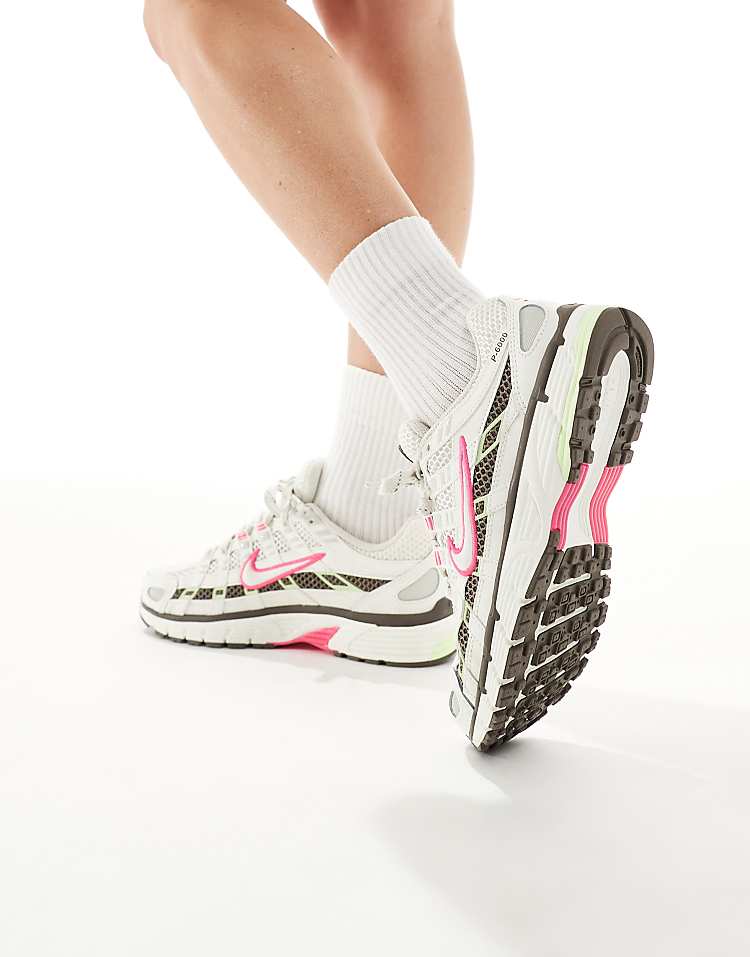 Найк P-6000 кроссовки белые с розовыми и зелёными акцентами