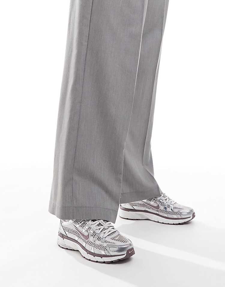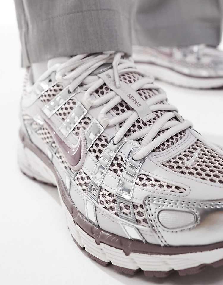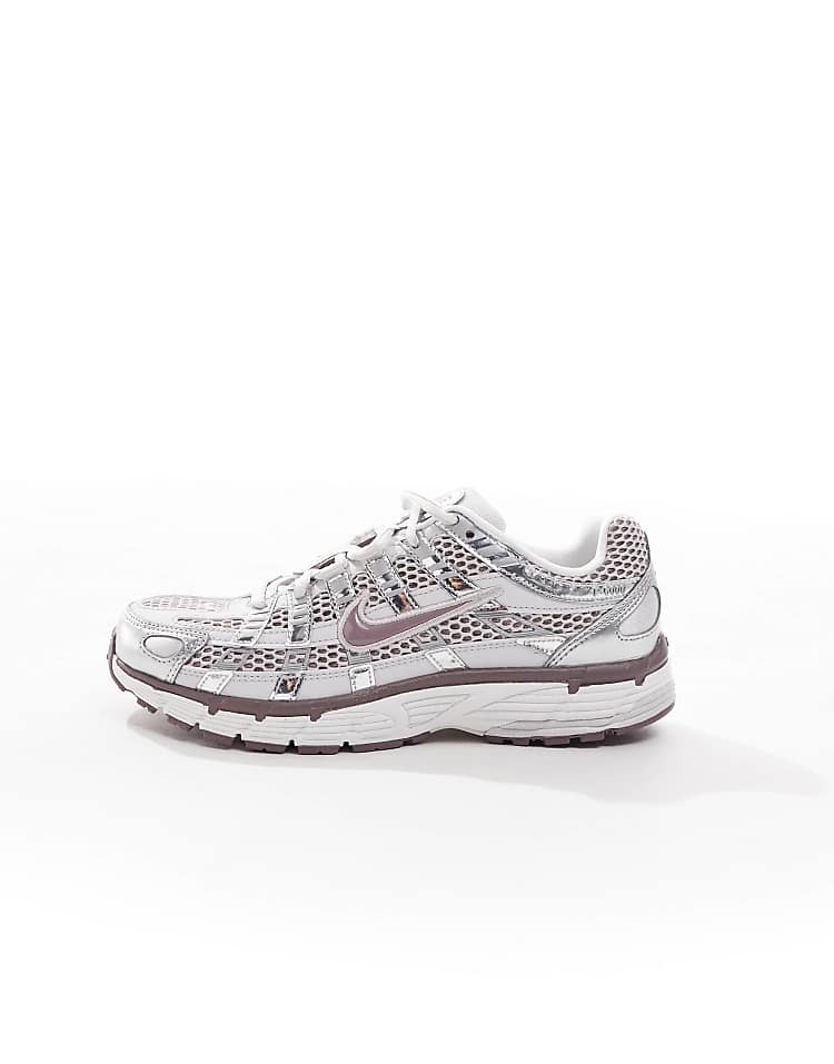 Найк P-6000 кроссовки серебристые с фиолетовыми элементами.