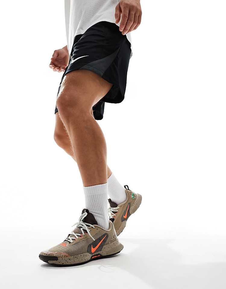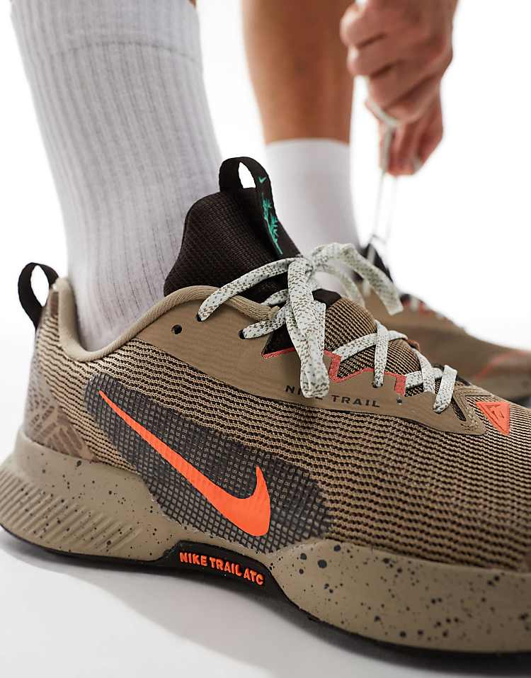Внутренняя часть дополнена мягким язычком и уплотненным голеностопом, что улучшает фиксацию и снижает риск натирания. Подошва Nike Trail ATC демонстрирует надежное сцепление на мокрой и сухой поверхности, а рельефный протектор уверенно держит грунт, песок и камни. Промежуточная подошва из пеноматериала обеспечивает легкую амортизацию — идеально для продолжительных нагрузок и динамичного ритма.