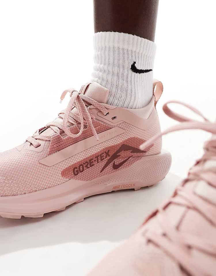 Найк Пегасус Трэйл 5 кроссовки женские с технологией GORE-TEX, подходящие для трейловых пробежек и активных прогулок по пересечённой местности. Обувь сочетает в себе высокую функциональность, водонепроницаемость и комфорт благодаря применению передовых решений от Nike.