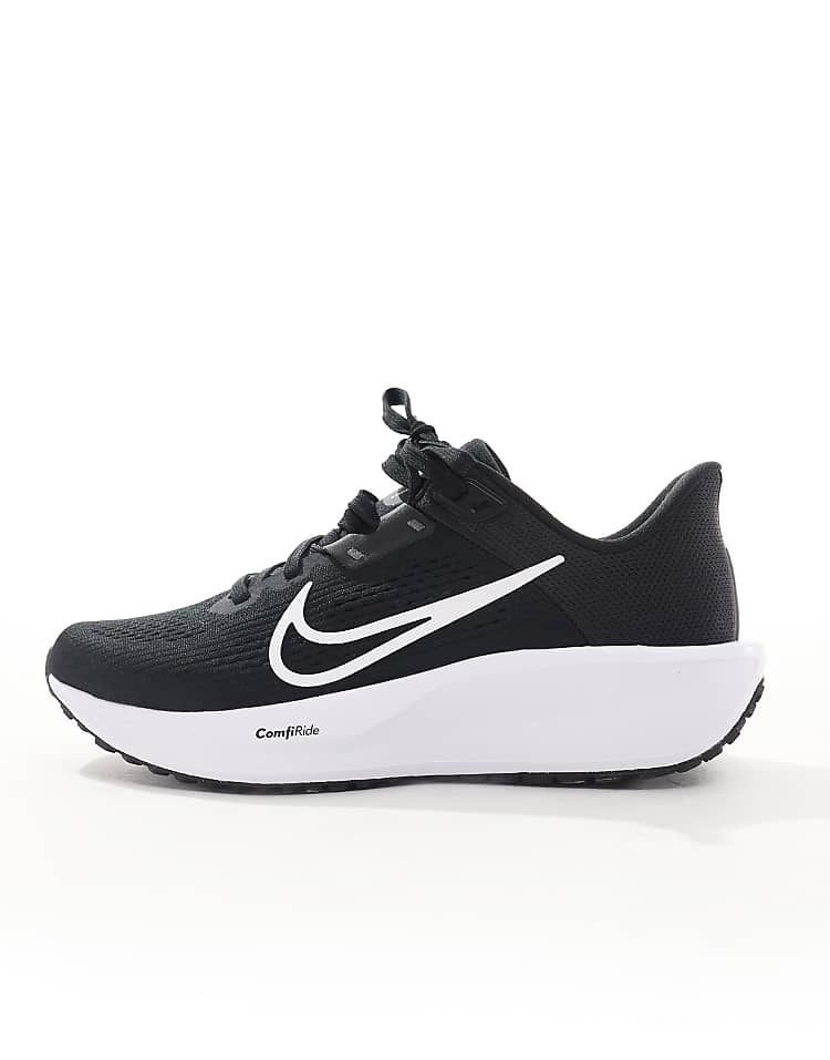 Комфортные беговые кроссовки Nike Running Quest 6 — это идеальный выбор для активного образа жизни и регулярных тренировок. Модель выполнена в стильном бело-чёрном цвете и сочетает в себе лёгкость, устойчивость и современный дизайн. Верх из дышащей сетки обеспечивает циркуляцию воздуха, предотвращая перегрев стопы даже при интенсивной нагрузке. Удобная шнуровка и мягкие вставка на язычке с манжетой плотно фиксируют стопу, исключая проскальзывание.