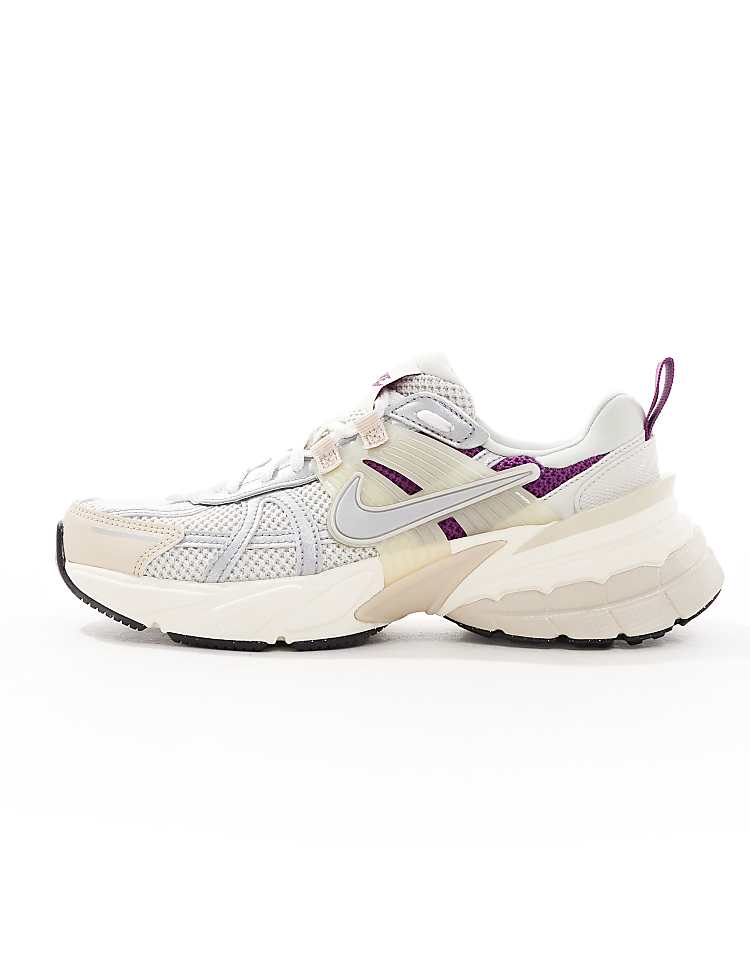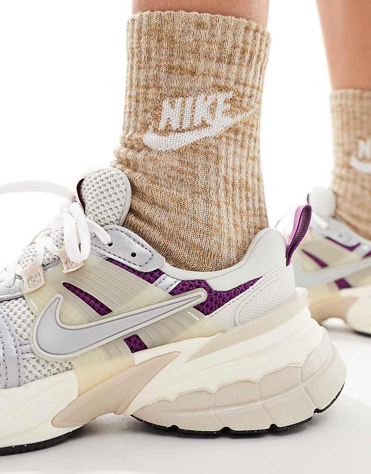 Найк V2K Run кроссовки женские бежевого цвета с технологией амортизации и текстурированной подошвой.