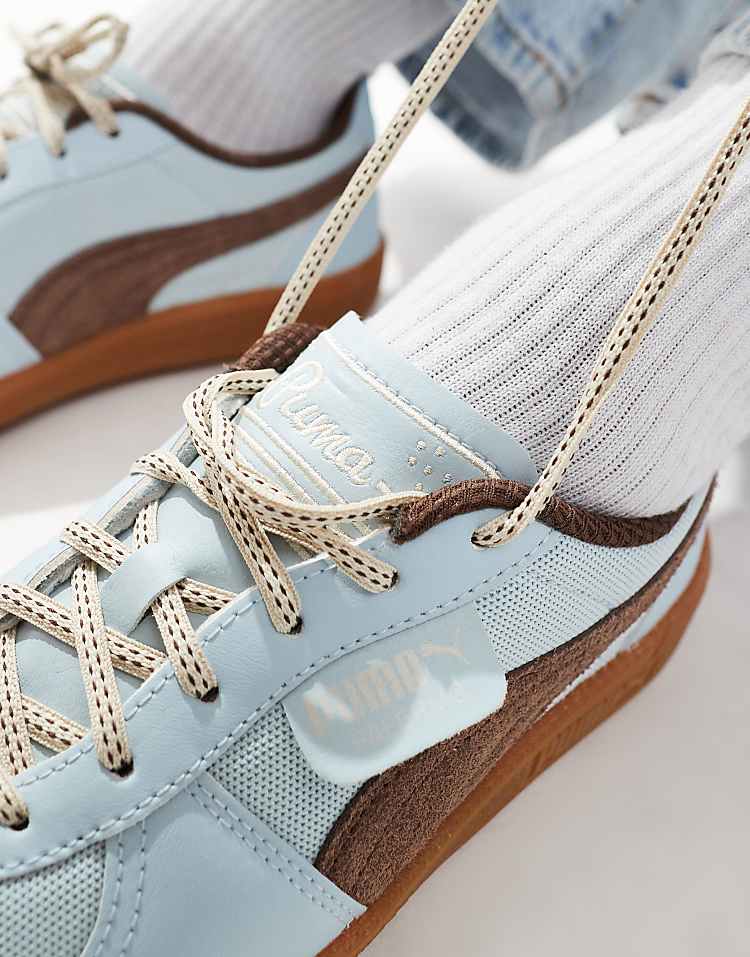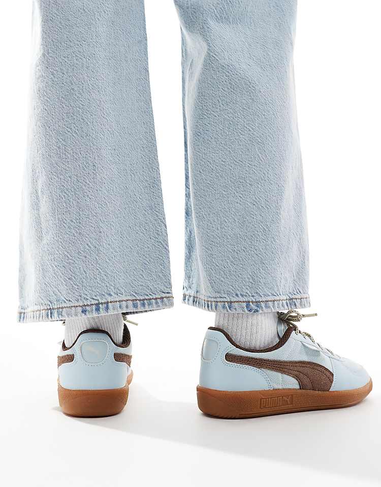 Пума Палермо кроссовки повседневные в эффектном сочетании светло-синего и коричневого цветов.