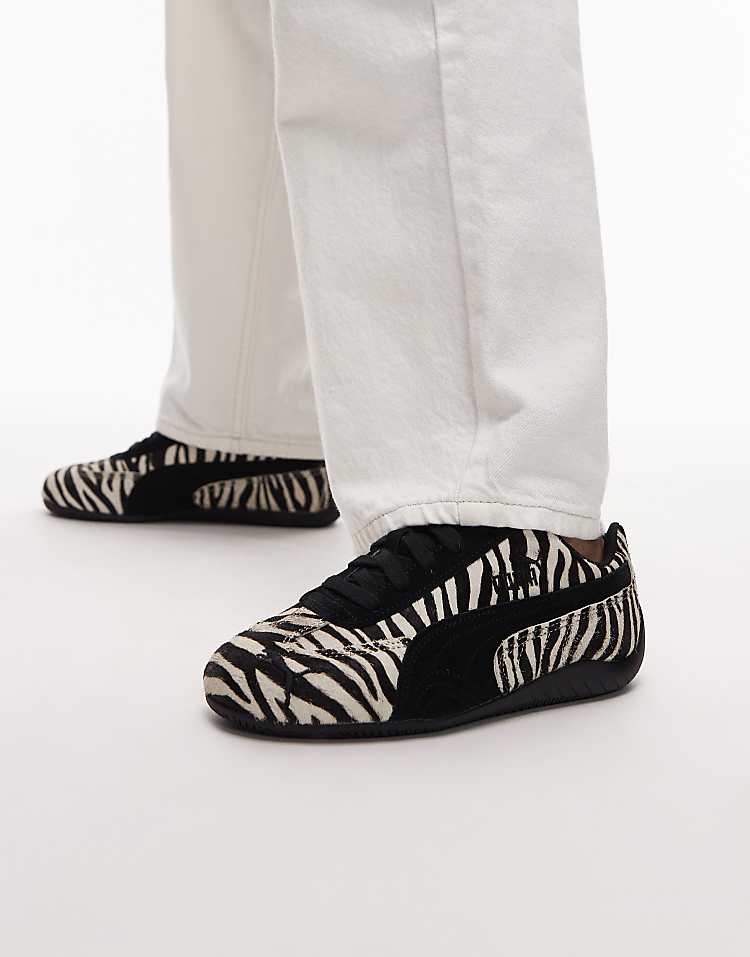 Пума Спидкат женские кроссовки с принтом зебры и кожаным верхом.