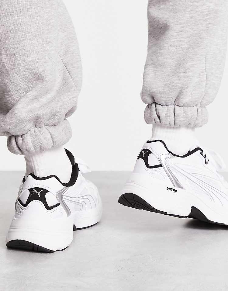 Пума Teveris Nitro кроссовки белые с металлическими деталями и технологией Nitro Foam.