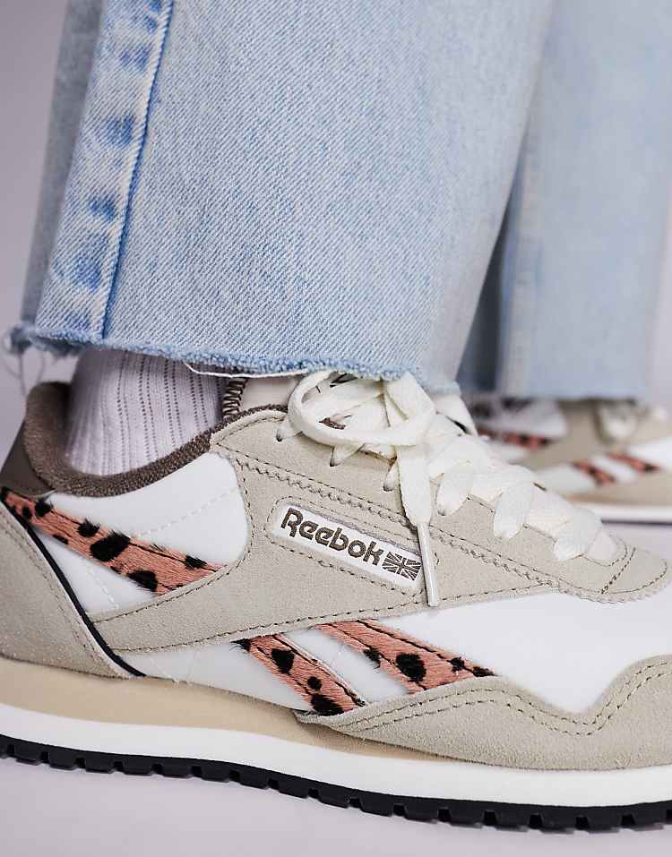 Рибок Классик AZ кроссовки женские в бежево-леопардовом дизайне сочетают винтажный стиль и повседневную практичность. Модель выполнена из комбинации замши и натуральной лошадиной шерсти, что придаёт верху благородную фактуру и уникальный вид. Каждая пара — это баланс между ретро-эстетикой и современной интерпретацией классических кроссовок. Идеальный выбор для тех, кто ценит бежевые кроссовки женские с индивидуальностью и утончёнными деталями.