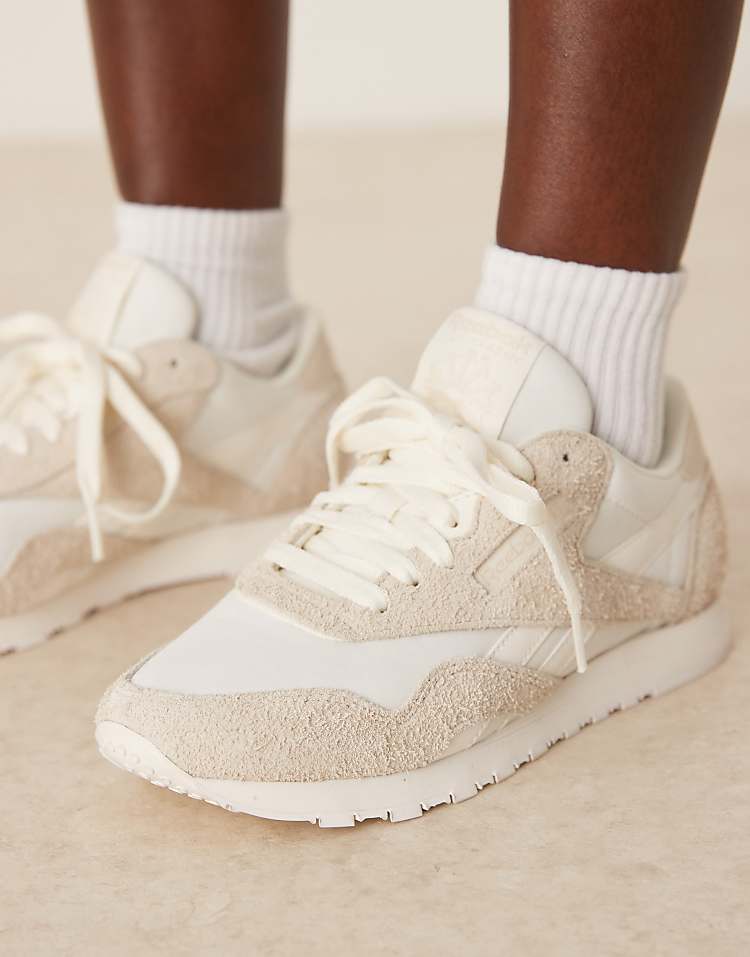 Классические кроссовки Reebok Classic — это универсальная модель, которая сочетает в себе стиль, комфорт и признанное качество бренда. Верх выполнен из текстиля и замши, что обеспечивает лёгкость и дышащие свойства, а также аккуратный внешний вид на долгие годы носки. Модель оформлена в светлой цветовой гамме, что делает её идеальным выбором для повседневных образов, сочетаясь как с джинсами, так и с короткими шортами или чиносами.