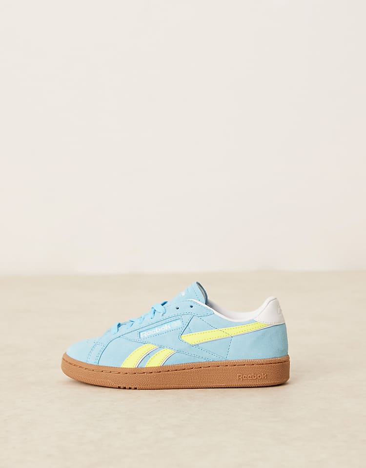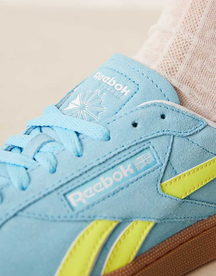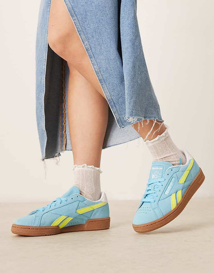 Культовые кроссовки Reebok Club C Grounds — это идеальное сочетание винтажного стиля и современного комфорта. Мягкий замшевый верх премиум-качества обеспечивает плотную посадку и приятные тактильные ощущения, а подошва с эффектом платформы добавляет образу выразительности. Кроссовки выполнены в светло-голубом цвете с яркими жёлтыми акцентами и характерной фирменной резиновой подошвой цвета беж, которые подчёркивают ретро-стилистику модели.