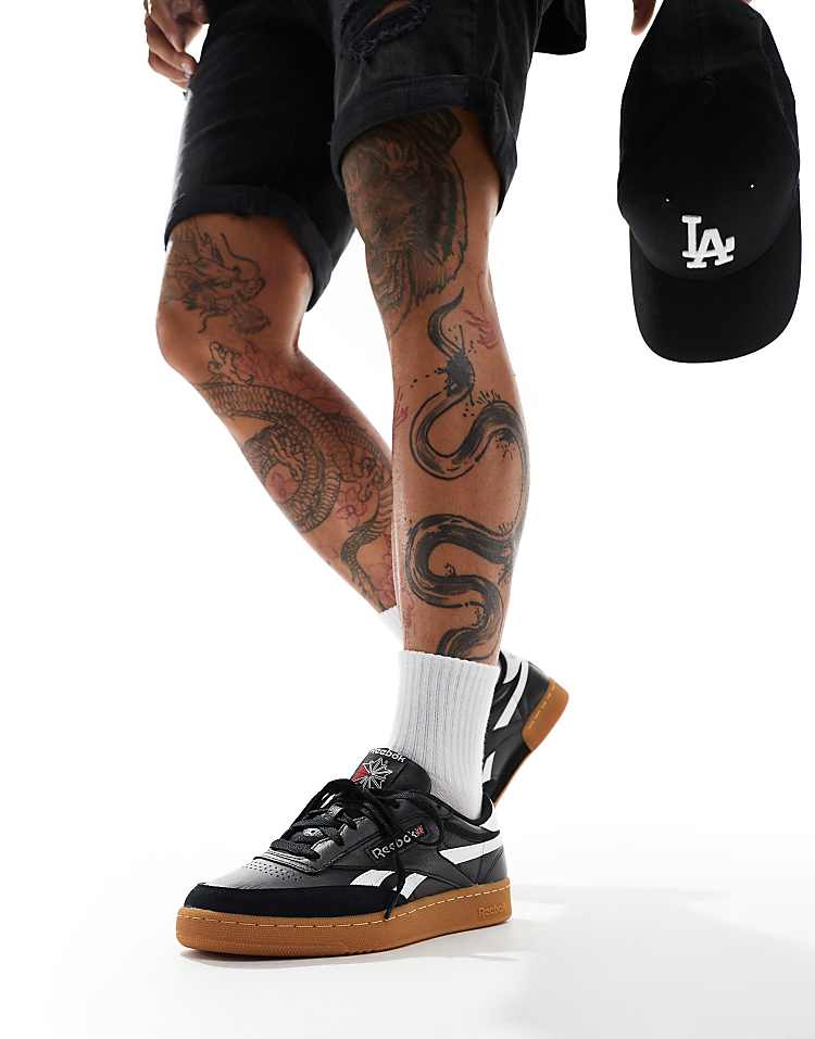 Рибок Club C Revenge кроссовки винтажные черные из натуральной кожи и текстиля.