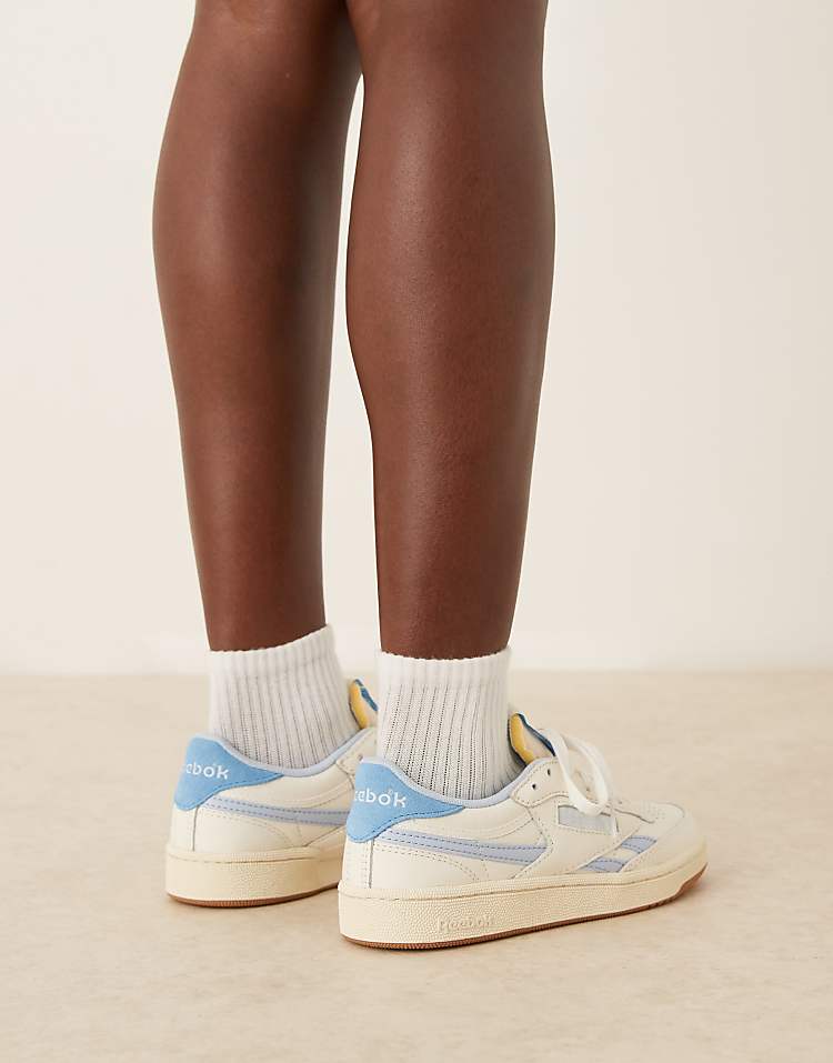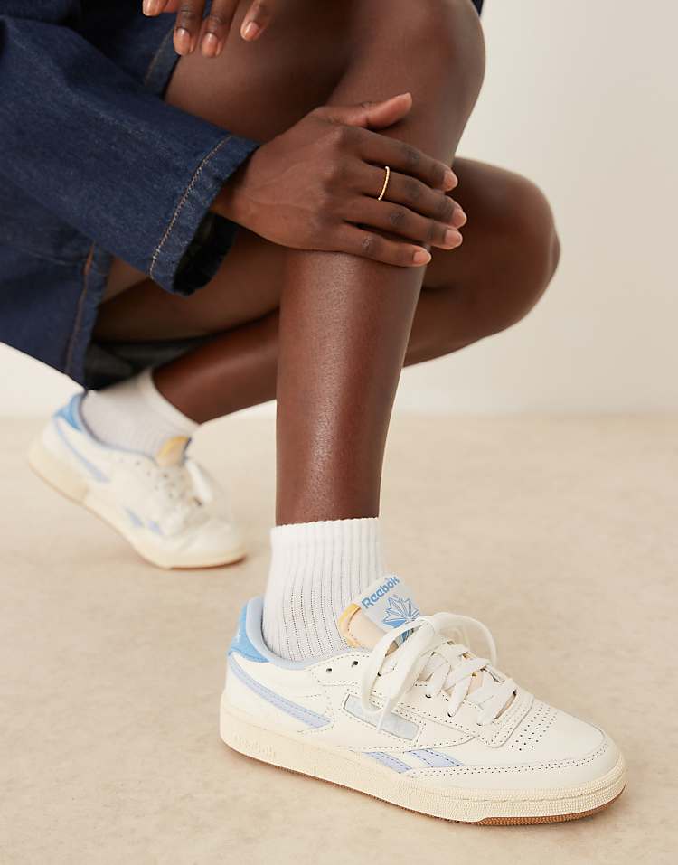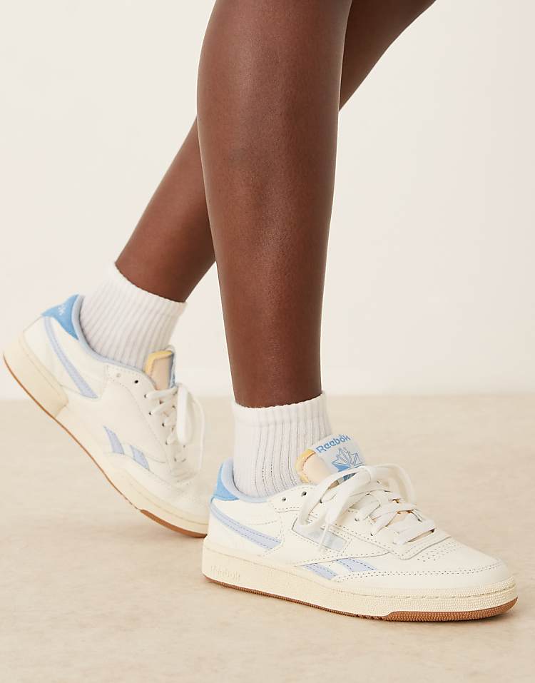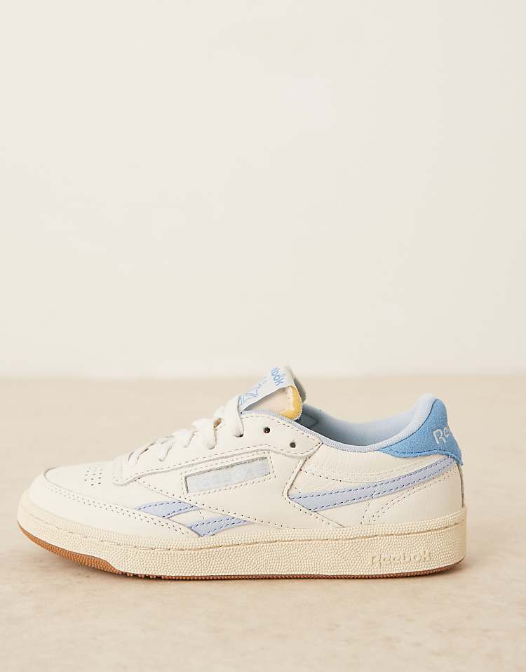 Рибок Клуб Си Ревендж кроссовки белые из натуральной кожи с перфорацией для вентиляции и подошвой из резины.
