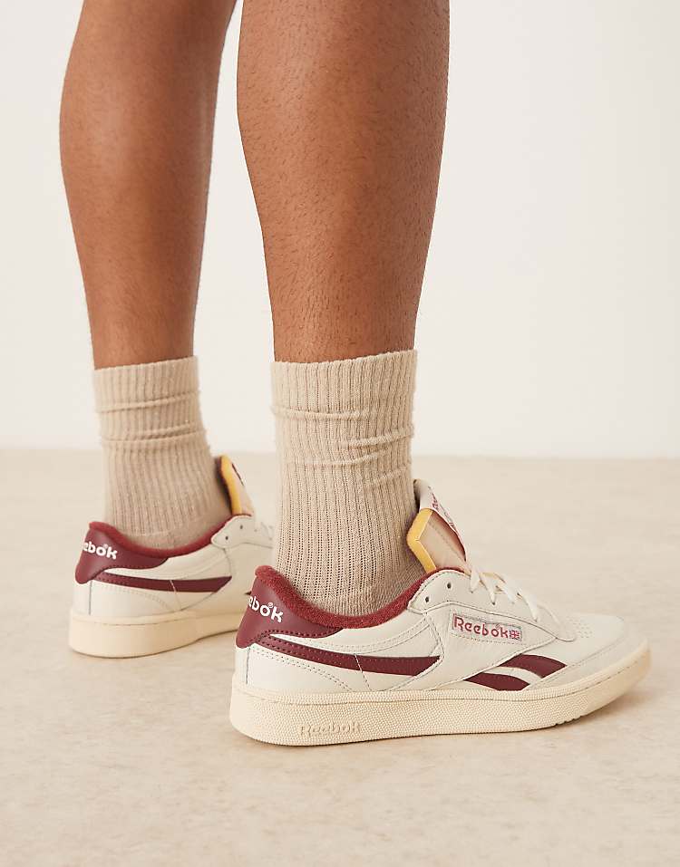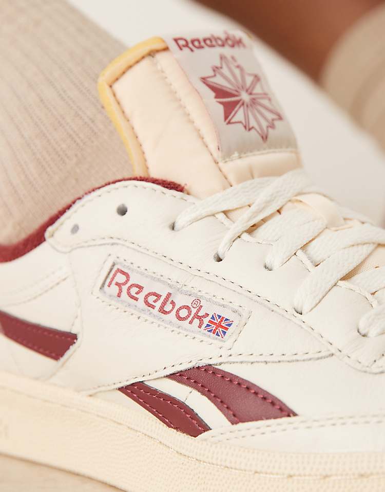 Рибок Клуб Си Ревендж повседневные кроссовки белого цвета с бордовыми элементами.