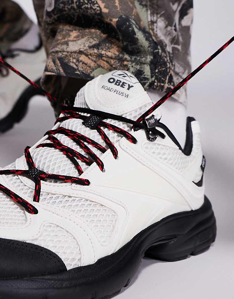 Кроссовки Reebok из коллаборации с брендом Obey выполнены в минималистичном стиле с низким верхом, что делает их универсальным выбором для городских образов. Верх — из прочного текстиля, обеспечивающего лёгкость и вентиляцию. Удобная шнуровка позволяет плотно зафиксировать стопу, а мягкий язычок и уплотнённый голеностоп обеспечивают дополнительный комфорт при ходьбе.
