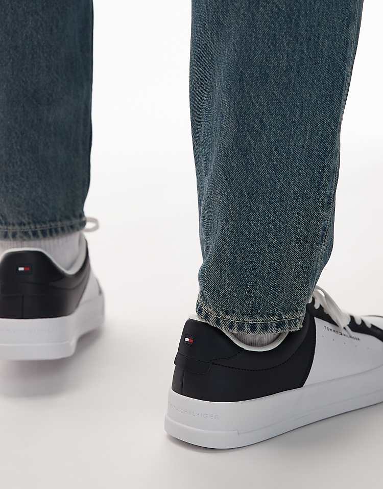 Томми Хилфигер court sneakers кроссовки белые с контрастным синим акцентом и прочной резиновой подошвой.