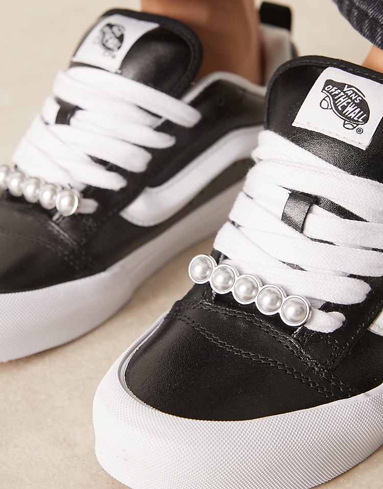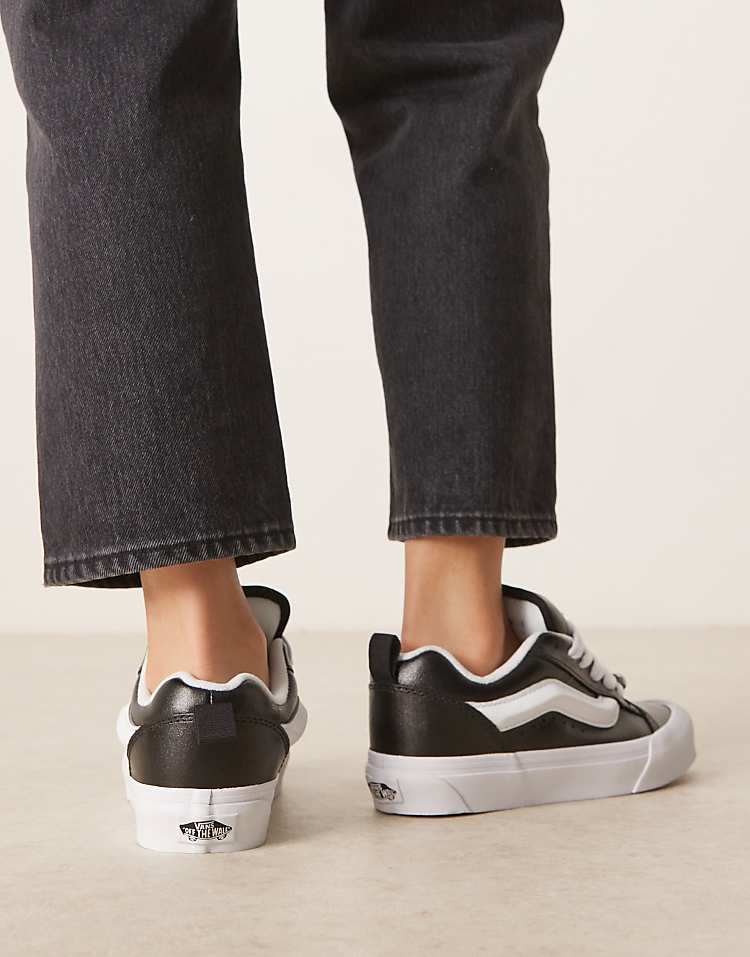 Классические кеды Vans Knu Skool сочетают в себе легендарный стиль Old Skool и современную комфортную посадку. Эти женские кроссовки выполнены из высококачественной матовой кожи, что придаёт им элегантный вид и обеспечивает долговечность носки. Верх дополняет узнаваемая белая полоса на боку — отсылка к культовой модели, впервые выпущенной в 1977 году. На пятке — ярлык с надписью ‘Off The Wall’, символ философии бренда, ориентированной на индивидуальность и смелость самовыражения.
