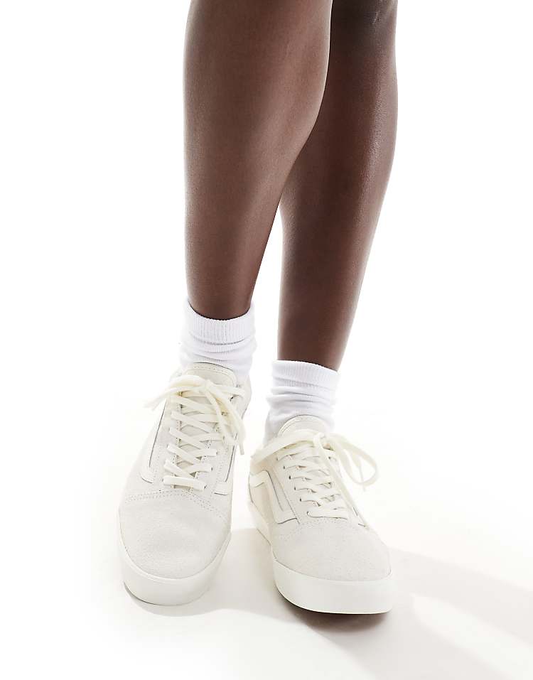Ванс Олд Скул кроссовки белые повседневные на каждый день с высокой подошвой и кожаным верхом.