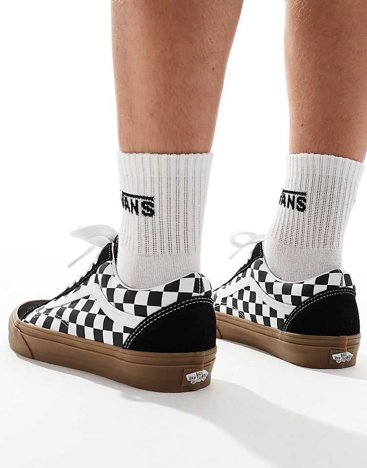 Ванс Олд Скул кеды в клетку черные с белым узором.