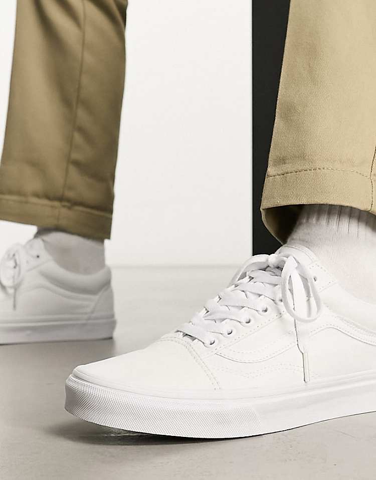 Ванс Олд Скул кеды белые из ткани с классической боковой полоской.