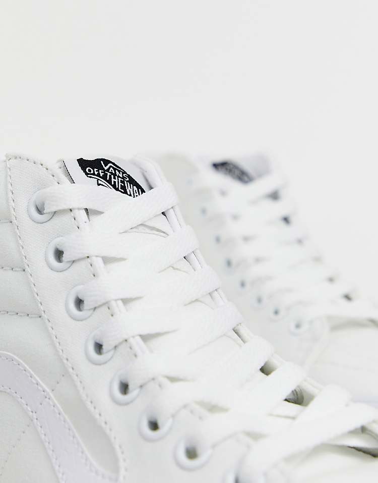 * Повседневные высокие кроссовки Vans Sk8-Hi — культовая модель, вдохновлённая скейтбордингом, которая с годами стала символом уличной моды. Верх выполнен из прочного белого текстиля, устойчивого к износу и отлично подходящего для активной носки. Белые кеды сочетаются с любым стилем — от джинсов и худи до мини-юбок и бомберов, подчёркивая индивидуальность.